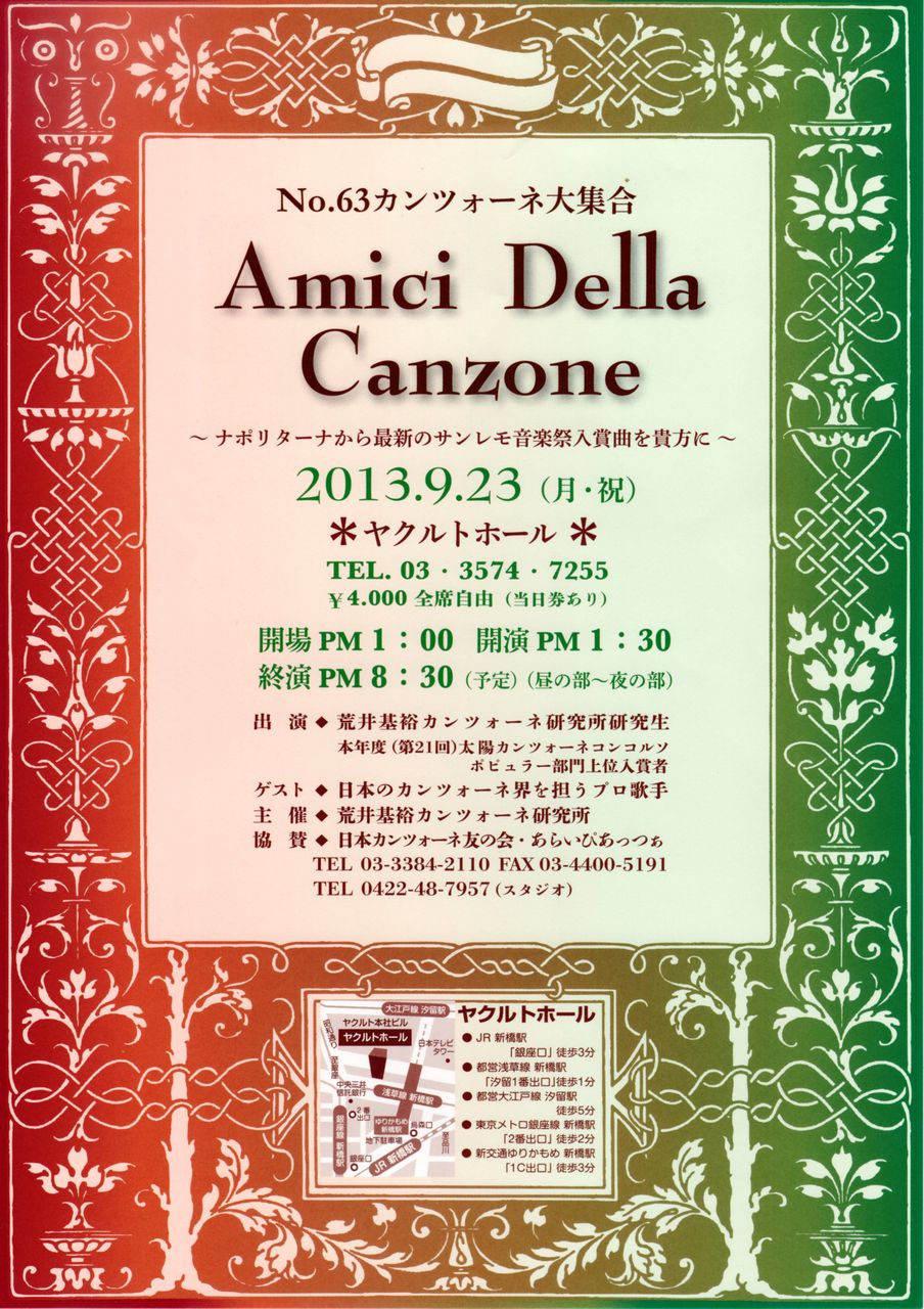 ¡Ø°ì½ï¤Ë¥¤¥¿¥ê¥¢²»³Ú¤ò³Ú¤·¤à²ñ¡Ù¤È¤¤¤¦Ì¾ÌܤǻϤ᤿¤â¤Î¤Î¡¢ºÇ½é¤ÎȾǯ¤°¤é¤¤¤ÏƱ¹¥¤ÎÇÚ¤¬½¸¤Þ¤ë±ã²ñ¤È²½¤·¤Æ¤¤¤¿¤¿¤á¡¢Âè9²óÌܤȤʤë2005ǯ12·î¤è¤ê¡¢4Éô¹½À®¤Î²»³Ú¾Ò²ð¥³¡¼¥Ê¡¼¤ò¼ç¼´¤È¤·¡¢¹ç´Ö¤Ë´¿ÃÌ¥¿¥¤¥à¤ò¼è¤ë·Á¤ËÊѹ¹¡¢¸½ºß¤Þ¤Ç´ðËÜŪ¤Ë¤³¤Î¹½À®¤òƧ½±¤·¤Æ¤¤¤Þ¤¹¡£